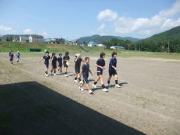 | ○中との合同練習 炎天下の中、先輩達とのロードワーク は、きつかったねぇ。 |