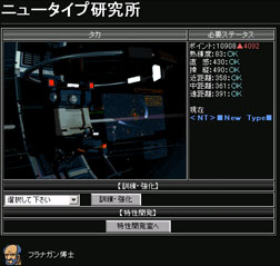 キャラクターの訓練を行ったり、ニュータイプ、強化人間になったりできます。