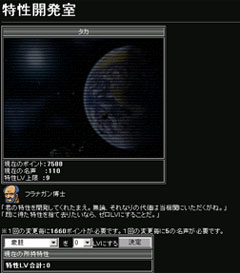 特性開発室では色々な特性を付けて自キャラのパラメーターの変更ができます。 |