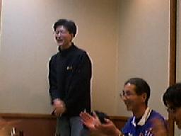 自己紹介中その2OSC ML−CLUBの代表者で、つなぎあわせの旗を振ることで有名な西田さん