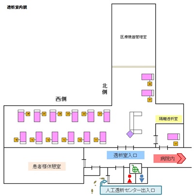 当院透析室へのアクセスは以下の通りです。(当院までのアクセスにつきましてはトップページよりアクセスをご参照ください。![]() ![]() 以上、不明な点がございましたら当院透析室までご連絡ください。 |