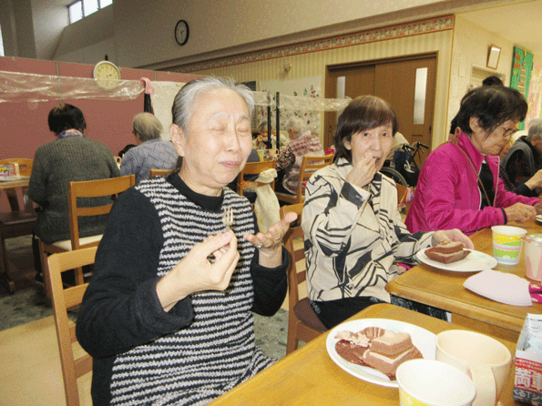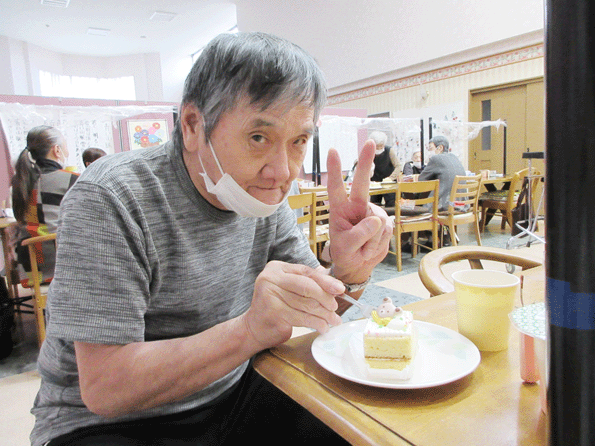 お店のケーキを買ってきてお風呂上りに皆さんで食べました。