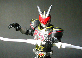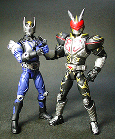 ![]() ・・・ 075■削りたおし ・・・ 。。・ 仮面ライダーブレイドのツインヒーローが発売! というワケで、週末はお約束の可動改造をいたしました。 ![]() R&M・ツインヒーロー改造・仮面ライダーカリス 今回は素体として、龍騎の時に発売されていた、R&Mシリーズ・リュウガを使用しました。 カリス改造の際のネックは、なんといっても足の模様。 しかし、それ以前に今回はリュウガが素体なので、龍騎ライダー特有の太ももの モールドを削り落とすのに一苦労でしたわ。 リューターなんて洒落たモノをもっていないので、デザインナイフでひたすら削ぎ落とし。 削った後はペーパーかけて、瞬間接着剤で細かいキズを埋めて、またペーパーかけて・・・ 一体これを何度くりかえしたことでしょう。 それだけならまだしも、独特の形状のボディがこれまた難題。 穴があくぐらいに削りまくって、ようやくソフビをかぶせることができました。 削るという作業を一生分やったような感じでしたわ・・・ ホントはR&Mナイトを削ってブレイドも作る予定だったんですが、 あまりにも疲れたので今回はパスします。 ![]() ナイト「いやー、おかげで命拾いしたよ。」 ![]() 肩口は胴体側にはさんであるので、腕を上にあげてもほとんど干渉しません。 カリスアローがないので、アギトの3怪人セットについていた武器を持たせてあります。 ![]() 問題の足の模様は、家にあったアルミテープらしきものを使用しました。 (いや別にテープ状のものならなんでもよかったんですが) 適当に手書きした型紙にあわせて両足分をくりぬき、金色を塗ってから足に貼り付け。 ロクな資料がない上、股関節があるために、模様の形をある程度ディフォルメしました。 不満が残る出来なので、また機会があったら作り直したい部分でもあります。 っつーか、今気付いたんですが、わき腹の模様はおろか、ヘルメットやら背中やら まったく塗装してなかったですね・・・ま、また今度<おい。 ![]() ちゃんと事情を説明すればいいものをいきなり怒鳴り倒したり殴りかかったり、 相手も話をまったく聞いてくれなかったりと、登場人物の行動パターンが アンパンマンの登場キャラクター並みなのがなんともいえない『仮面ライダーブレイド』ですが、 ようやく話が動き出してきたので、今後の展開に注目したいところですね。 ■バックナンバーを見る■ ※このサイト内にある文章・画像等の無断転載はお断りいたします。 |