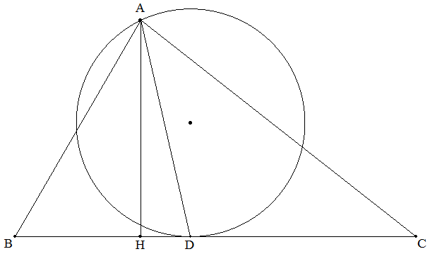 △ABCについて,BC上の点DでBCに接し,点Aを通る円の半径をr1とする。 (1) AD=d,AからBCに下ろした垂線の足をHとし,AH=hのとき,r1を d,hを用いて表せ。 (2) BC=a,CA=b,AB=c,BD=a1,DC=a2,△ABC=Sのとき,r1を a,b,c,a1,a2,Sを用いて表せ。 | ![]() |