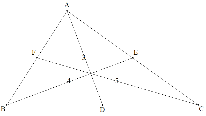 △ABCの3つの中線の長さが3,4,5のとき, △ABCの面積を求めよ。 | ![]() |
