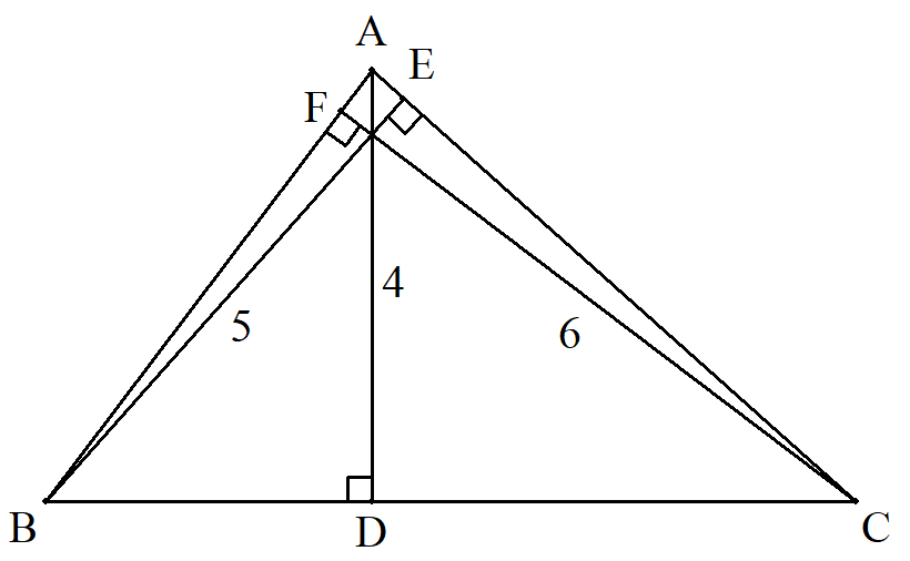 △ABCの3つの頂点から対辺までの長さが 4,5,6のとき,△ABCの面積を求めよ。 | ![]() |