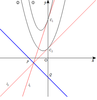 (1) 2つの放物線y=2x2+3x+4 ・・・①, y=x2+x+1 ・・・② について,x=0における ①,②の接線をl1,l2,①,②とy軸との交点を C1,C2とする。l1,l2の交点PとC1,C2を2:1に 外分する点Qを通る直線PQの方程式を求めよ。 (2) 2つの放物線y=a1x2+b1x+c1 ・・・①, y=a2x2+b2x+c2 ・・・② (a1≠a2,b1≠b2,c1≠c2) について,x=0における①,②の接線を l1,l2,①,②とy軸との交点をC1,C2とする。 l1,l2の交点PとC1,C2をa1:a2に外分する点Qを 通る直線の方程式を求めよ。 (3) (2)で,①,②からx2の項を消去した 方程式を求めよ。 | ![]() |
