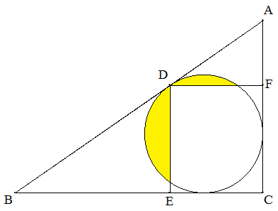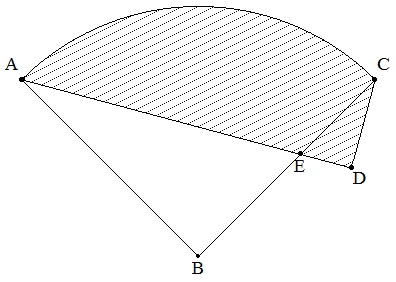 (中学生レベル) 中心角90°の扇形ABCの点Cを頂点として∠BCD=30°になるように 直角三角形CDEを作る。ADの長さがCDの長さより20cm長くなるとき, 網掛けの部分の面積を求めよ。ただし,円周率はπとする。 | ![]() |