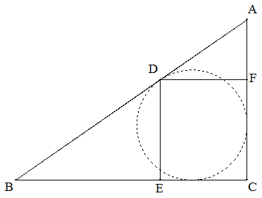 ∠C=90°の△ABCの内接円とABの接点DからBC,CAに下ろした 垂線の足をそれぞれE,Fとする。 AD=p,DB=qとおくとき,長方形DECFの面積を求めよ。 | ![]() |