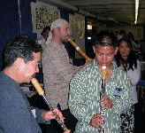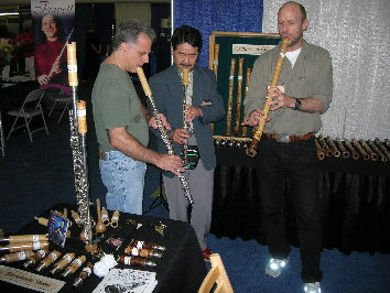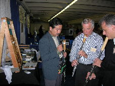 ![]() (左)Montyさんのブース前でのアンサンブル:右からMonty, John, Wataru, Marc (中)Show Caseが行われたSunrise Hall:終了後、 ステージに集まり関心を示すフルーティスト達 (右)アルトシャクルートを吹くMonty: すぐ手前で聞き入るのが 世界で3本目のダブルコントラバスフルートを KOTATOに製作依頼したRoland Tsoさん ![]() ブース前で3重奏:左からMarc, Kozan, John マークとの2重奏 < Shakuluteにチャレンジするフルーティスト達 > ![]() ![]() |